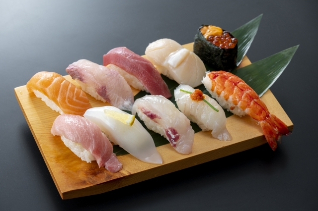 マグロ、中トロ、大トロ、鯛、サーモン、甘エビ、ウナギ、イカ、タコ